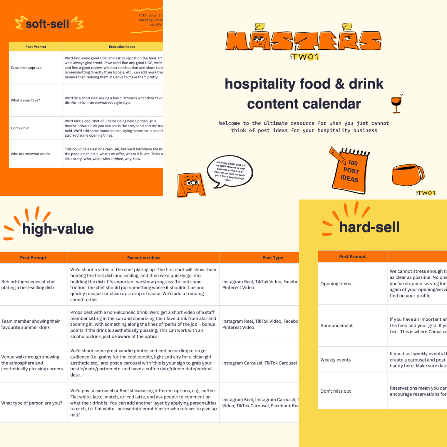 100 strategic, easy-to-execute post ideas for local hospitality businesses. Whether you use Instagram, Facebook, TikTok or all three, these post ideas will ensure your social media starts popping off.